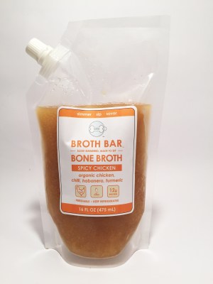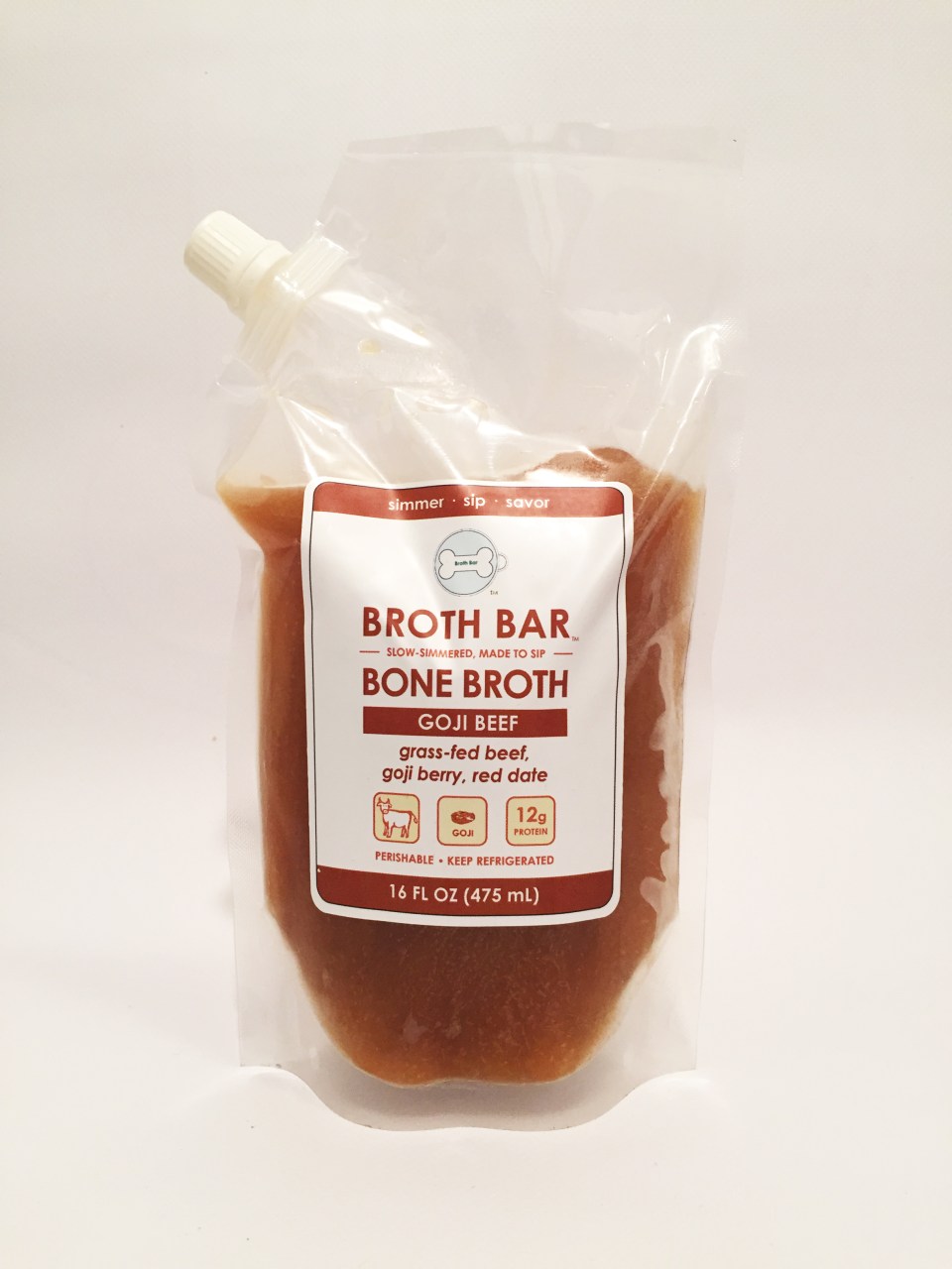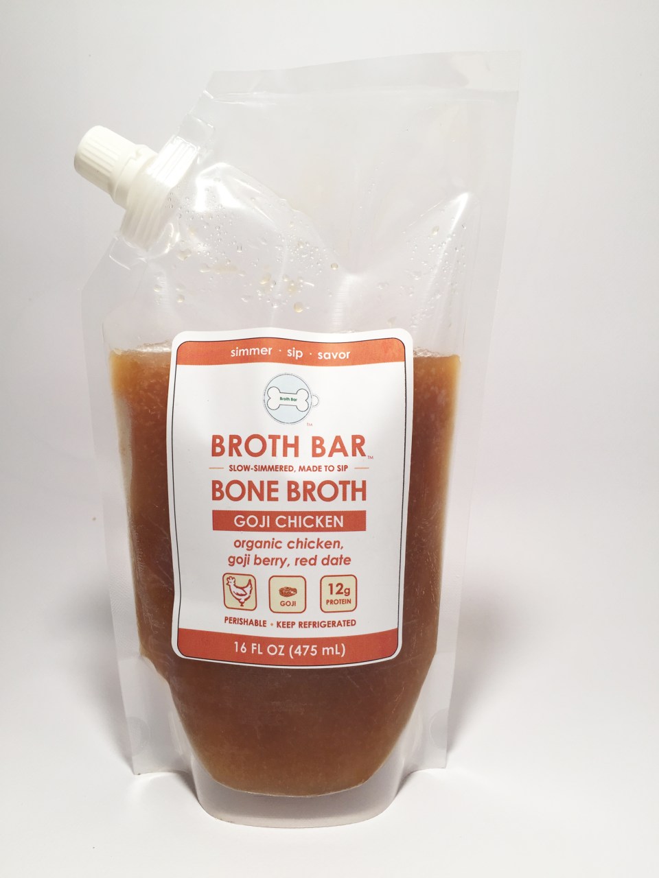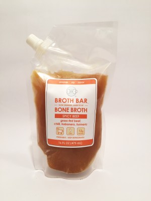 Chicken and Beef bone broth. Simmer, Sip, Savor. Comes in 16 fl oz spout packs.